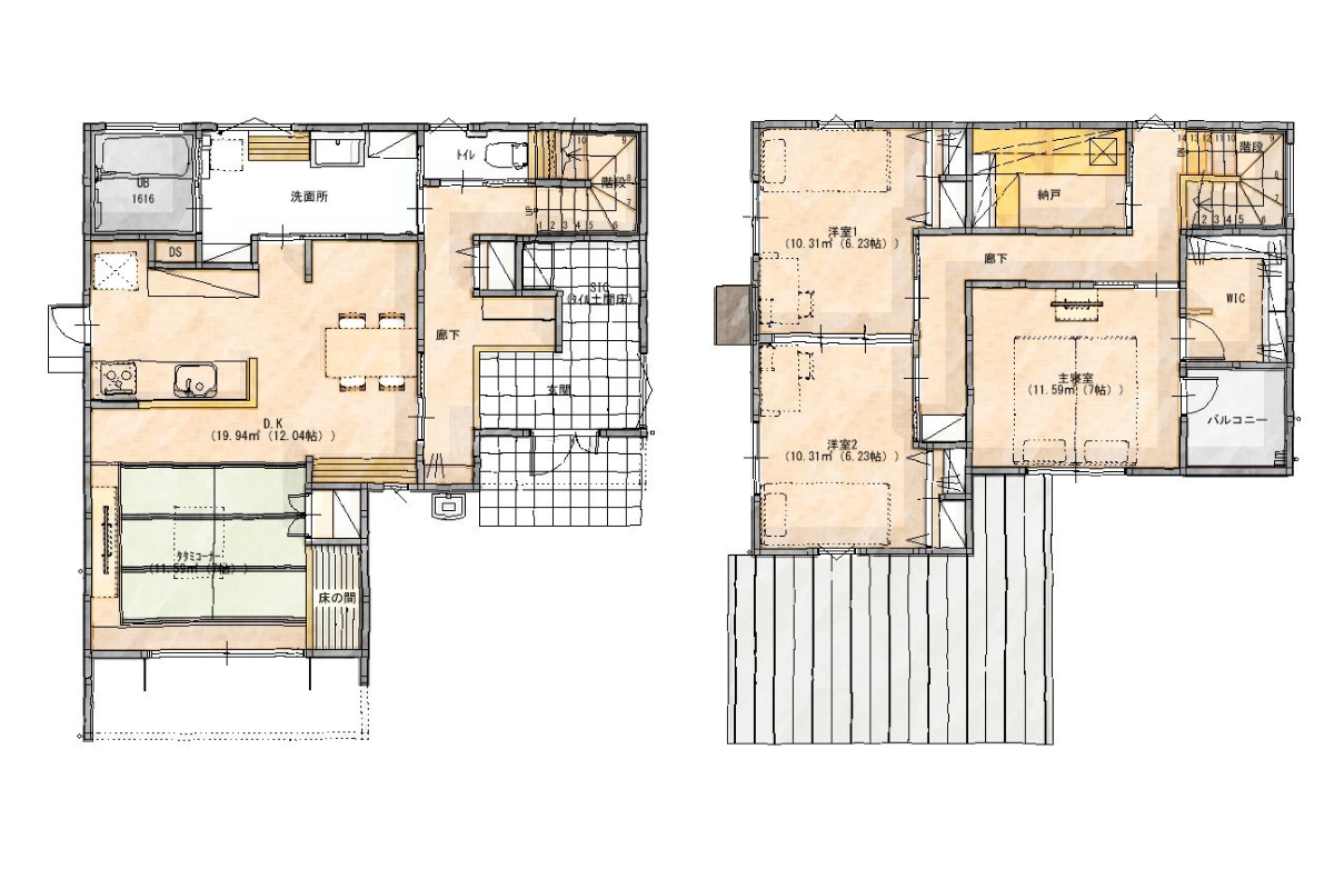 約12帖のダイニング・キッチン に、7帖のタタミコーナー が隣接した、開放感あふれるLDK。南向きの大きな窓から光が差し込むリビングは家族の憩いの場。お子様のお昼寝や遊び場として、また、来客時の客間としても活躍するタタミコーナーは、暮らしの幅を豊かに広げます。