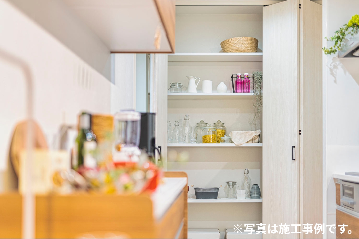 「どこに何をしまうか」が明確だから、もう収納に悩みません。 玄関横の広々シューズインクローク には、靴だけでなくベビーカーやアウトドア用品も楽々収納。キッチンには食器やストック品をたっぷりしまえるカップボード収納 、2階にはウォークインクローゼット と納戸 を設け、"使う場所の近くにしまう"を実現。家中がスッキリ片付く秘訣がここにあります。