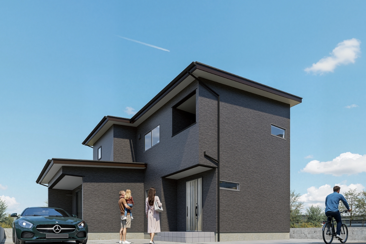 外壁はメンテナンス性にも優れたブラックのサイディング でシャープな印象に。内装は落ち着いた色合いで統一し、お施主様のセンスが光るアクセントクロス が空間を引き締めます。デザイン性と暮らしやすさを両立した、ヘルシーホームならではの設計をご覧ください。