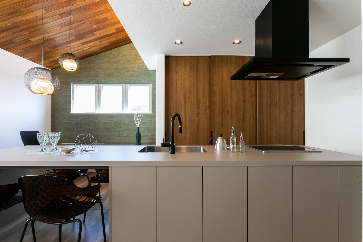 LDKはなんと26.61帖(44.08㎡)という圧倒的な広さを実現しました 。リビングの入り口ドアを開けた瞬間、視界いっぱいに広がる開放的な空間は必見です。キッチンにはタカラスタンダードの「オフェリア」フラット対面プランを採用 。視界を遮る壁がないため、お料理中もリビングにいるご家族と会話が弾み、家族の絆が自然と深まる設計です。