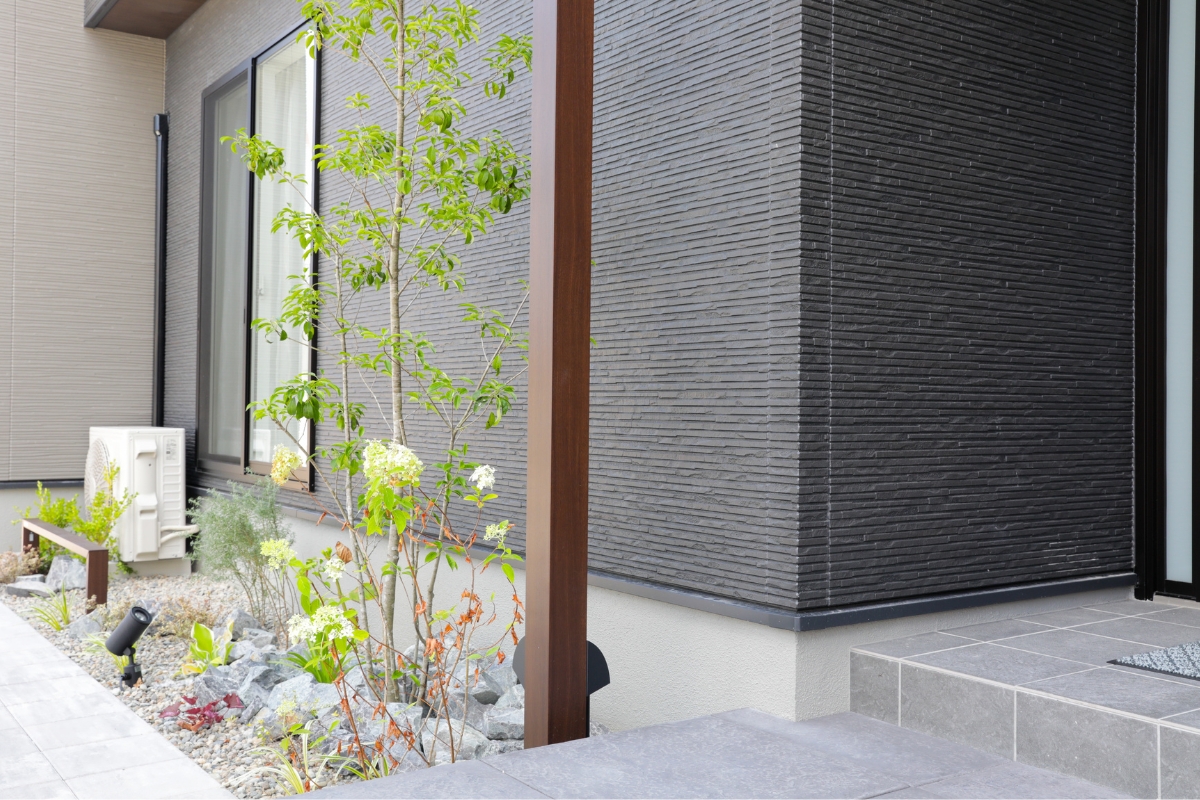 外観は、メンテナンス性に優れたニチハのサイディング(Vシリーズ)を採用し、シェードブリック調をメインにしたモダンなデザインに仕上げました 。リビングには、お気に入りの雑貨や写真を飾れる「ニッチ」を造作 。アクセントクロス と組み合わせることで、空間に彩りと個性をプラスしています。シンプルながらも洗練された、飽きのこないデザインをご覧ください。