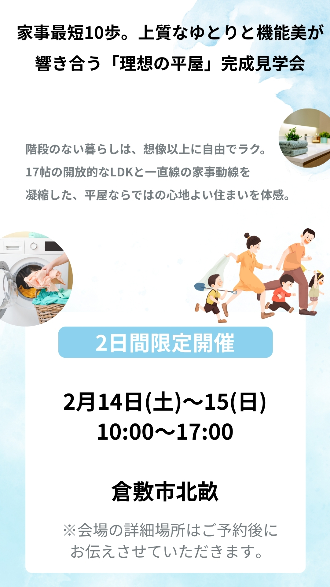【倉敷市北畝】家事最短10歩。上質なゆとりと機能美が響き合う「理想の平屋」完成見学会