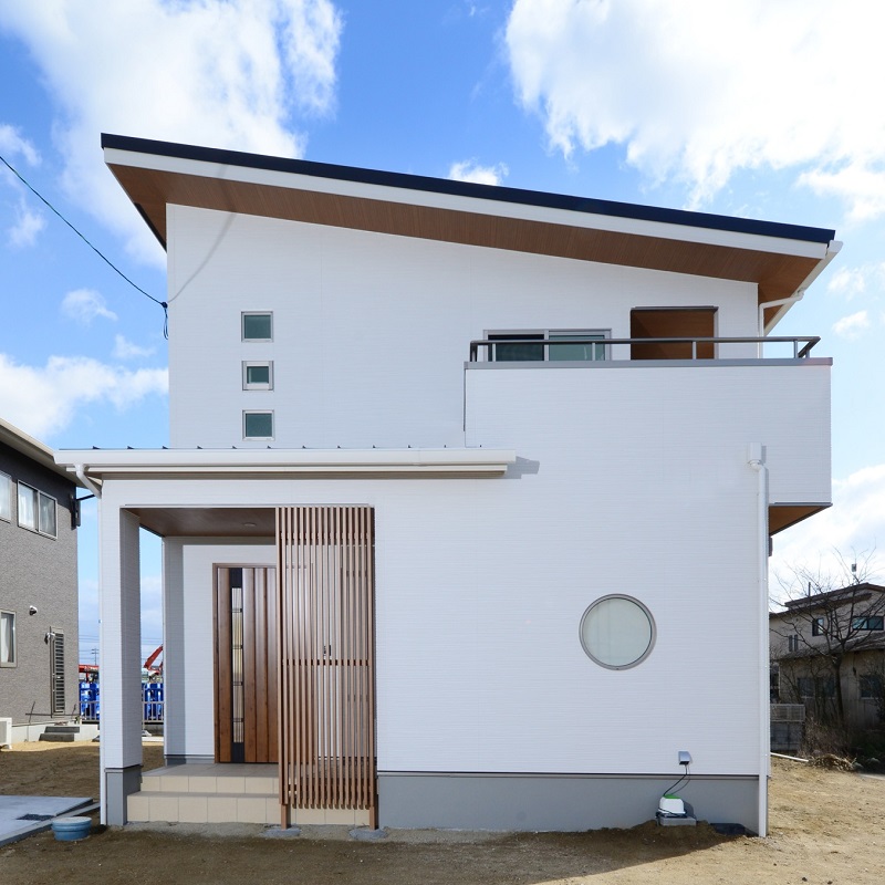 清潔感あふれる白と茶色で外観をまとめ、おしゃれな窓で外観に一工夫プラス。間取りは、らくらく家事同線のキッチン・洗面・お風呂の配置や、2階の大容量WICなど、こだわりました。内装は、おしゃれな縁なしの畳、キッチンのクロスもアクセントで変更し、内装にもこだわりました。