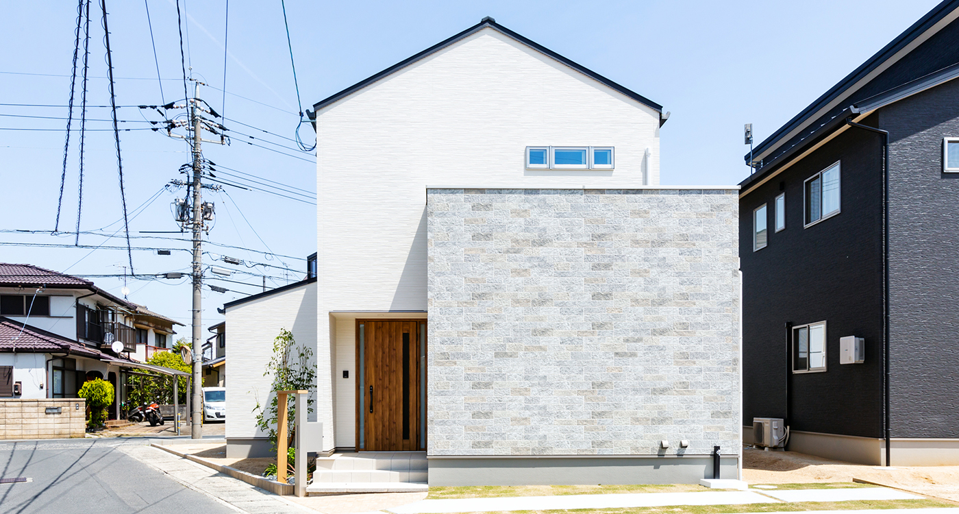 屋根の軒を出さずに形状をすっきりさせたシンプルでモダンな外観。