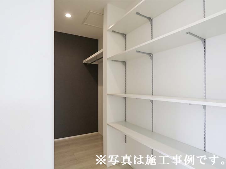 家族の衣類をまとめて一括収納。回遊動線で洗う・干す・しまうが最短に。大容量ファミリークローゼットで家事が軽く。探さない収納を実現。