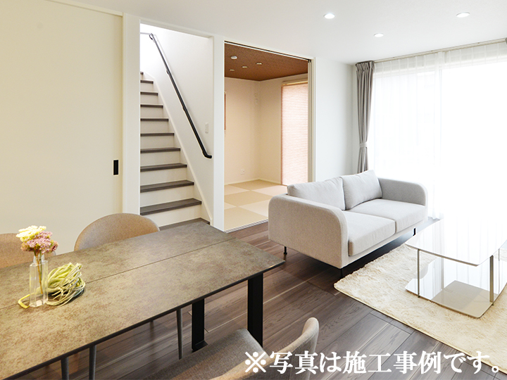 17帖LDKと3.75帖和室が一体となった、来客にも嬉しい開放感あふれるくつろぎ空間。 -