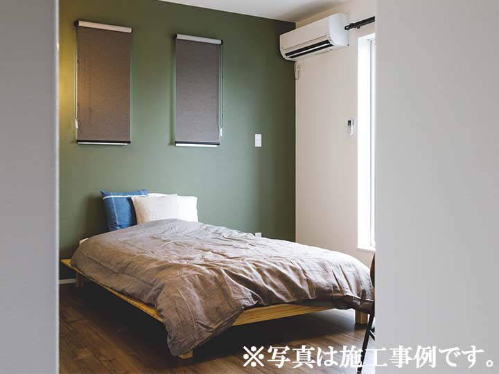 主寝室からWIC、バルコニーへ抜ける連続動線で、朝の身支度や洗濯がスムーズ。光と風が心地よい主寝室。